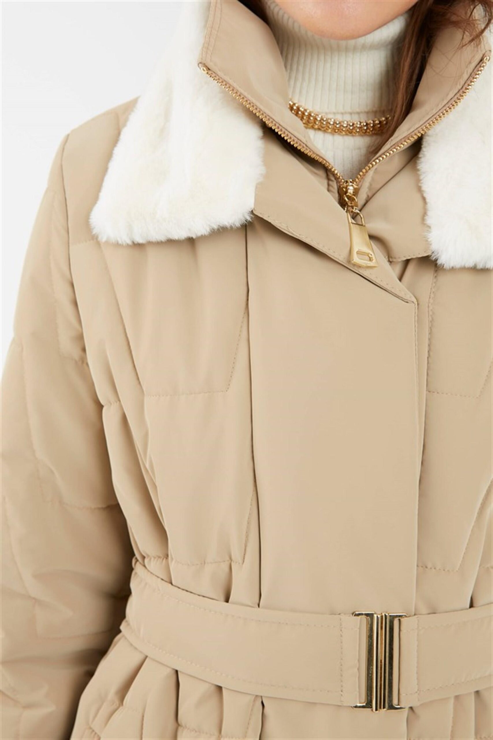 Zühre Yaka Kürk Detaylı Şişme Kaban-12764