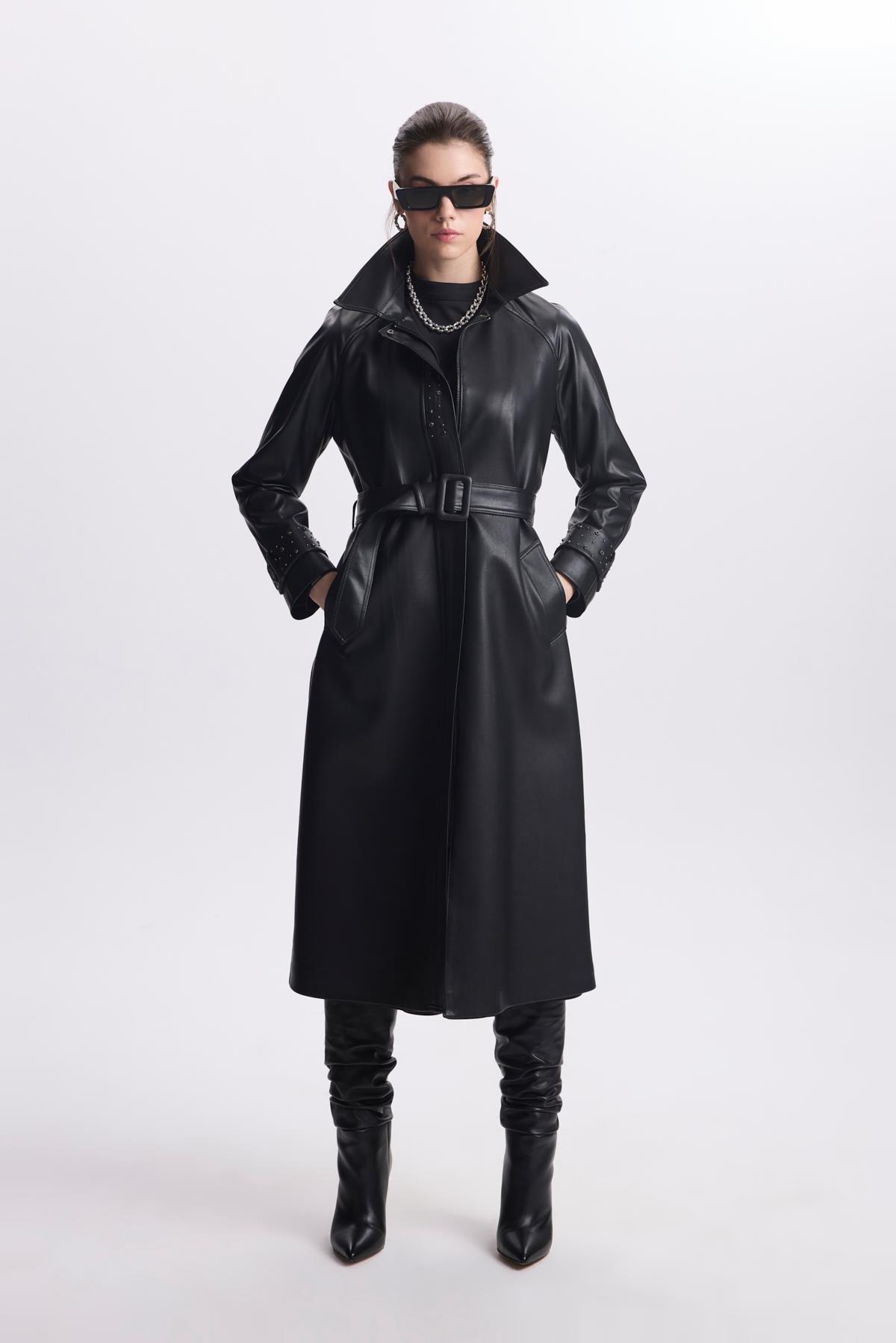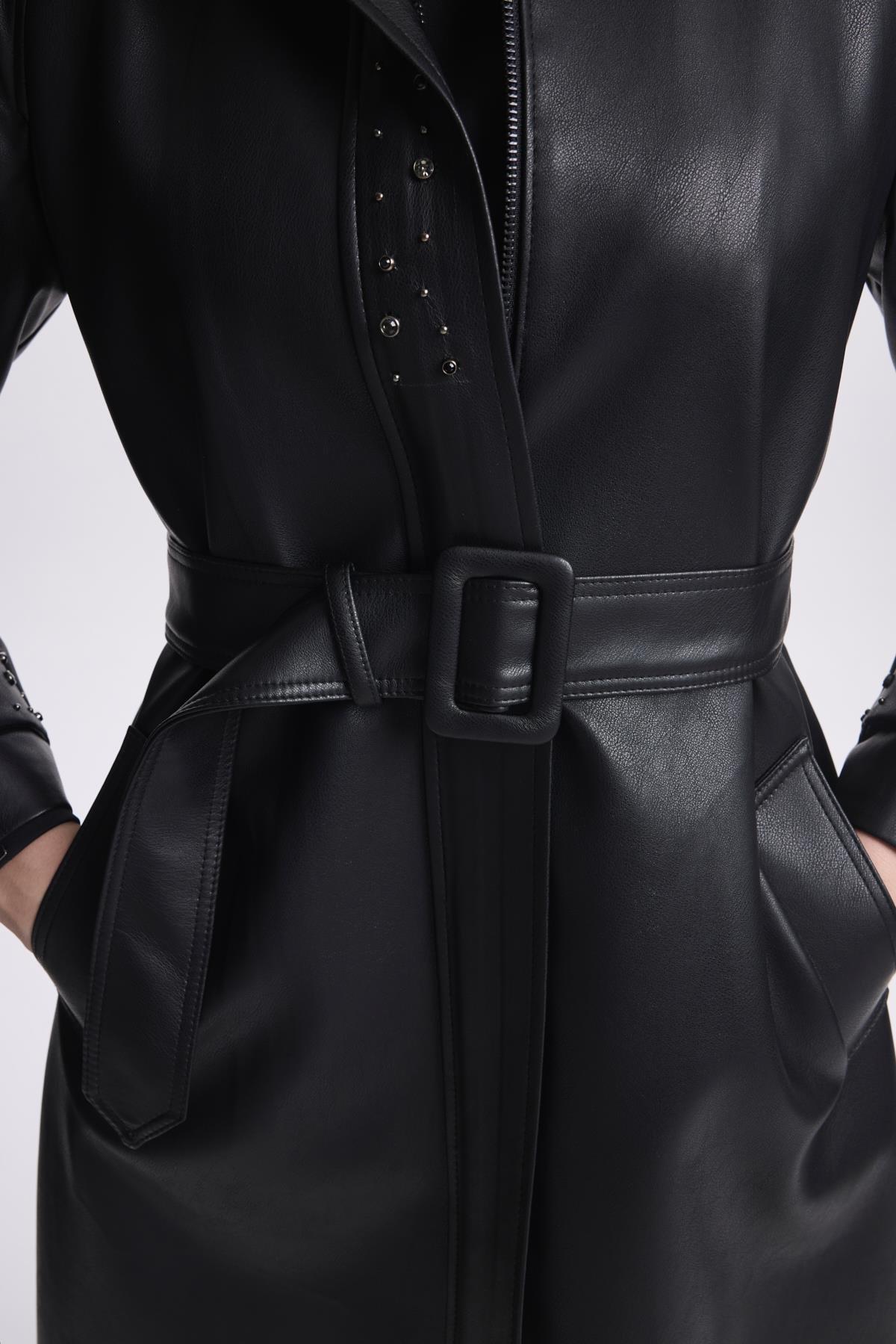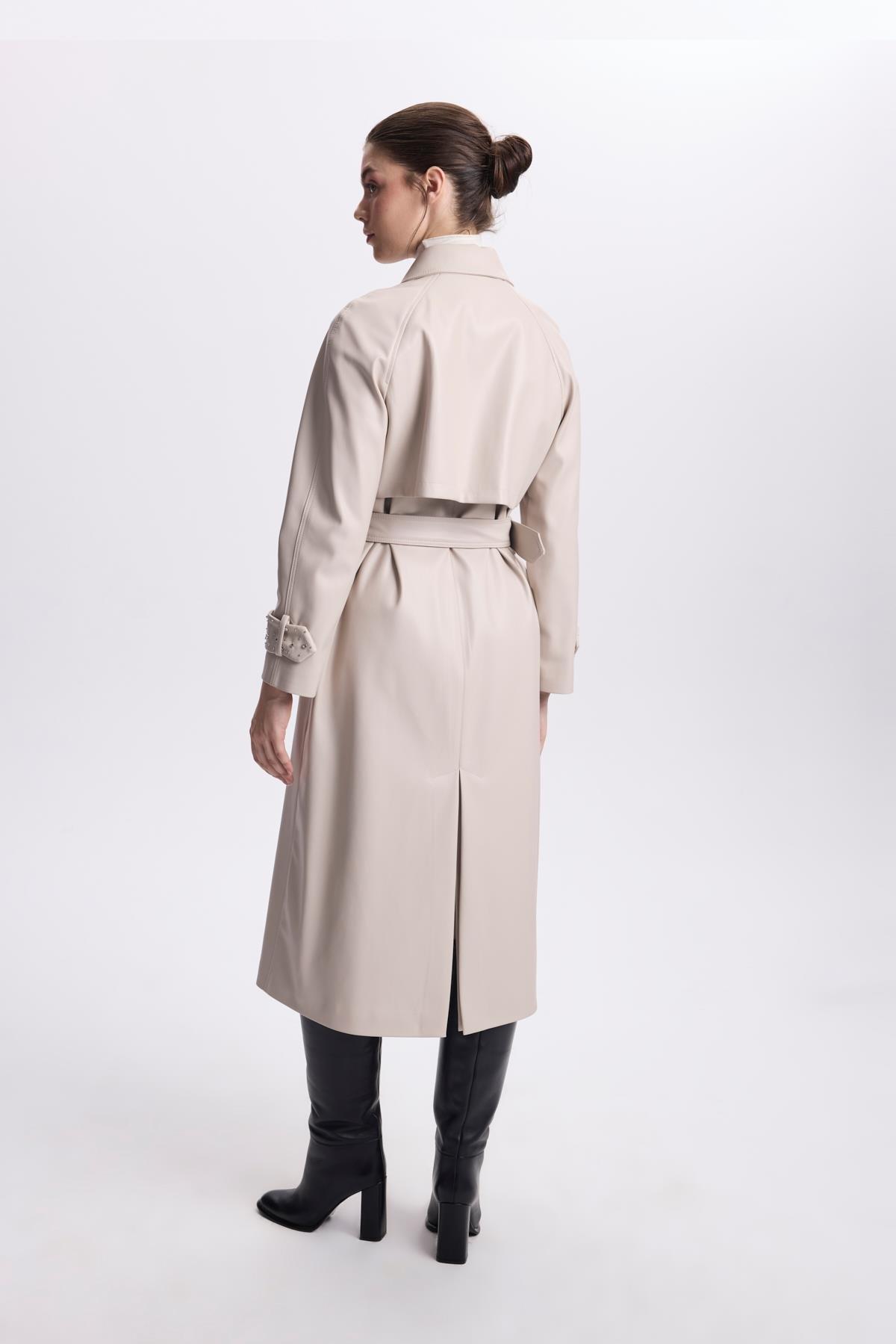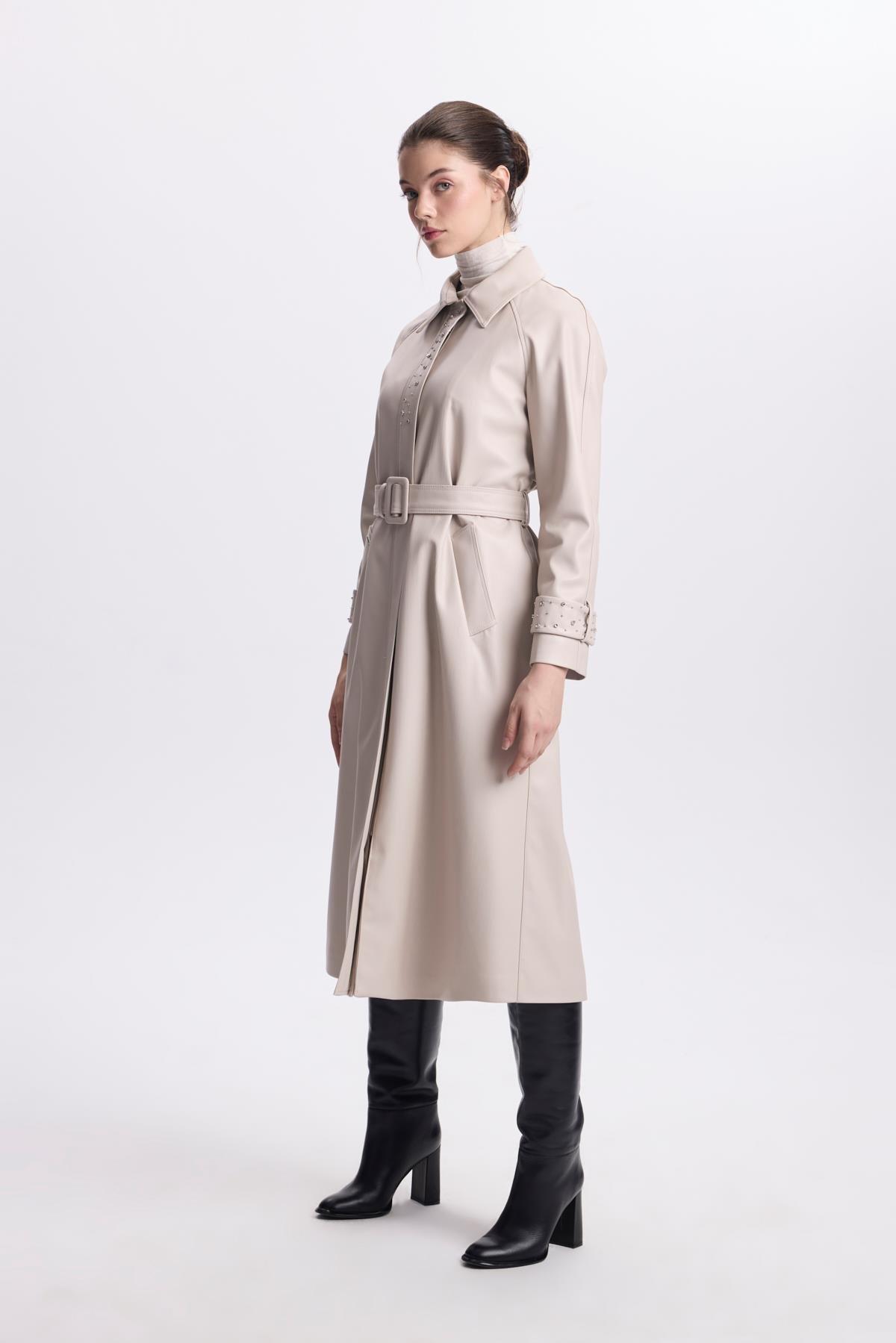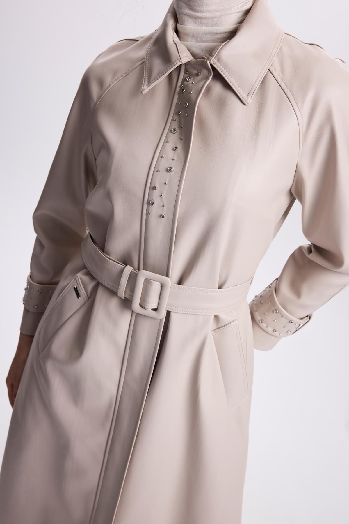 Kol Detaylı Kemerli Deri Taş Trençkot 13518 Özellikleri