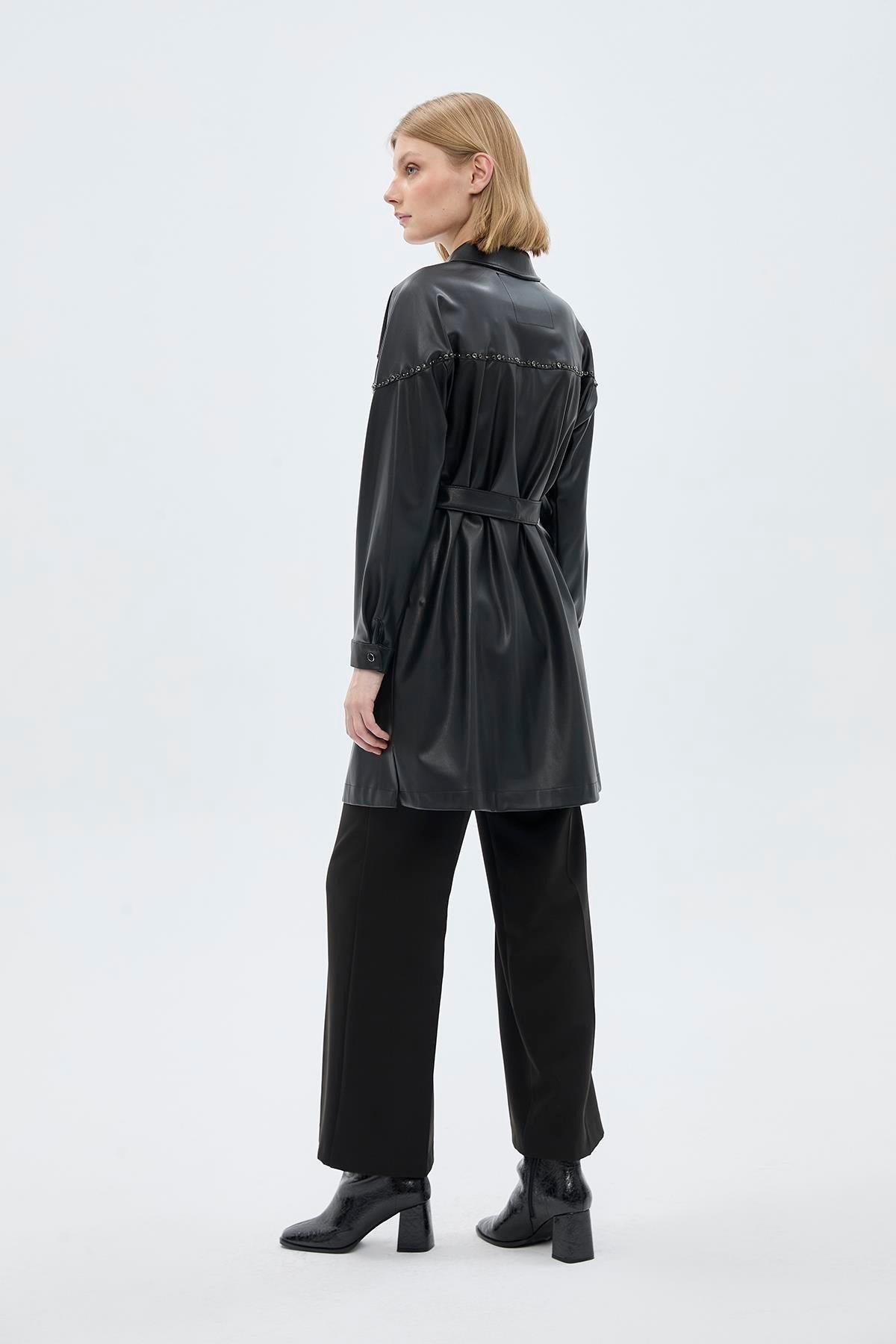 - Zühre Yaka Taş Detaylı Deri Kap-13518