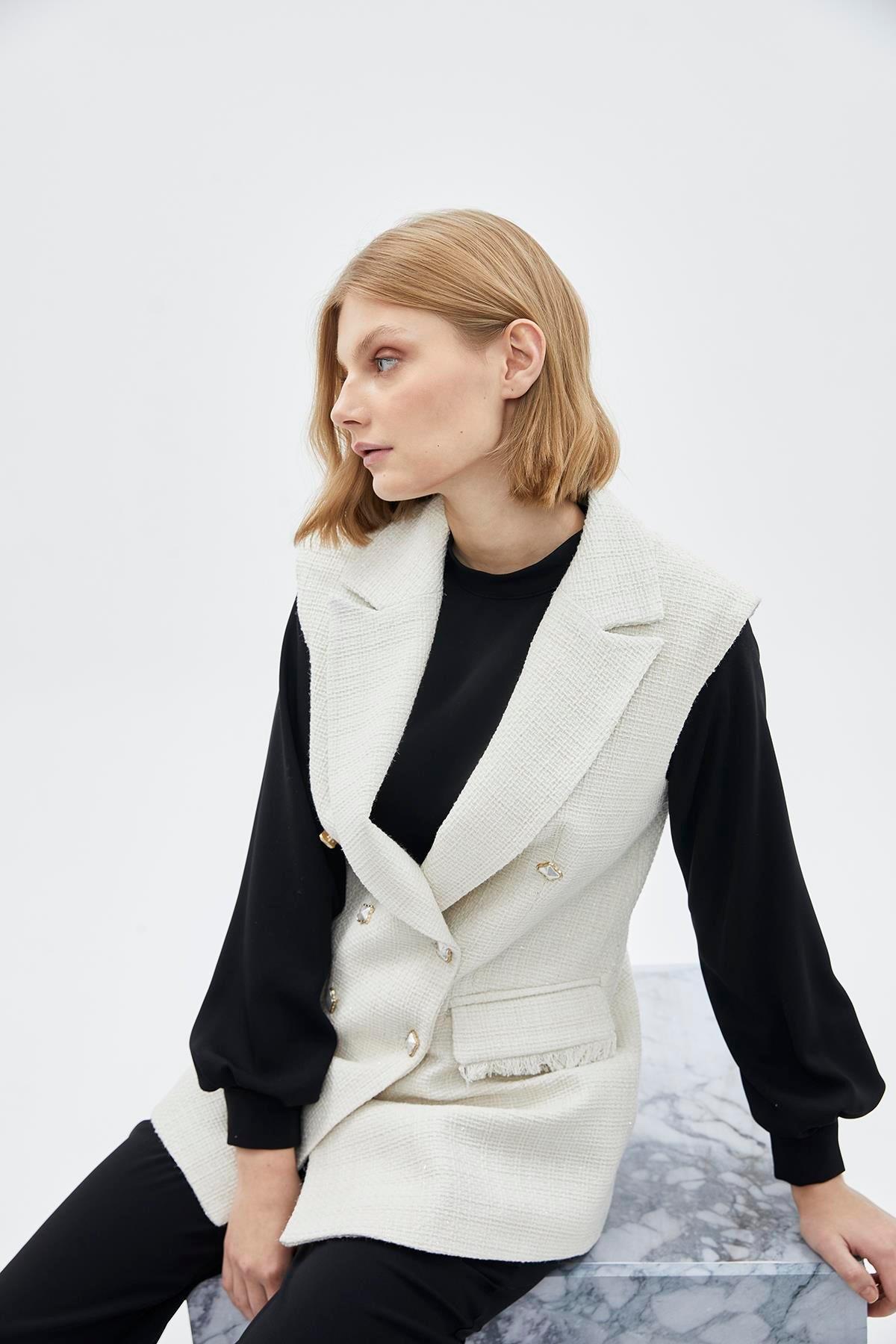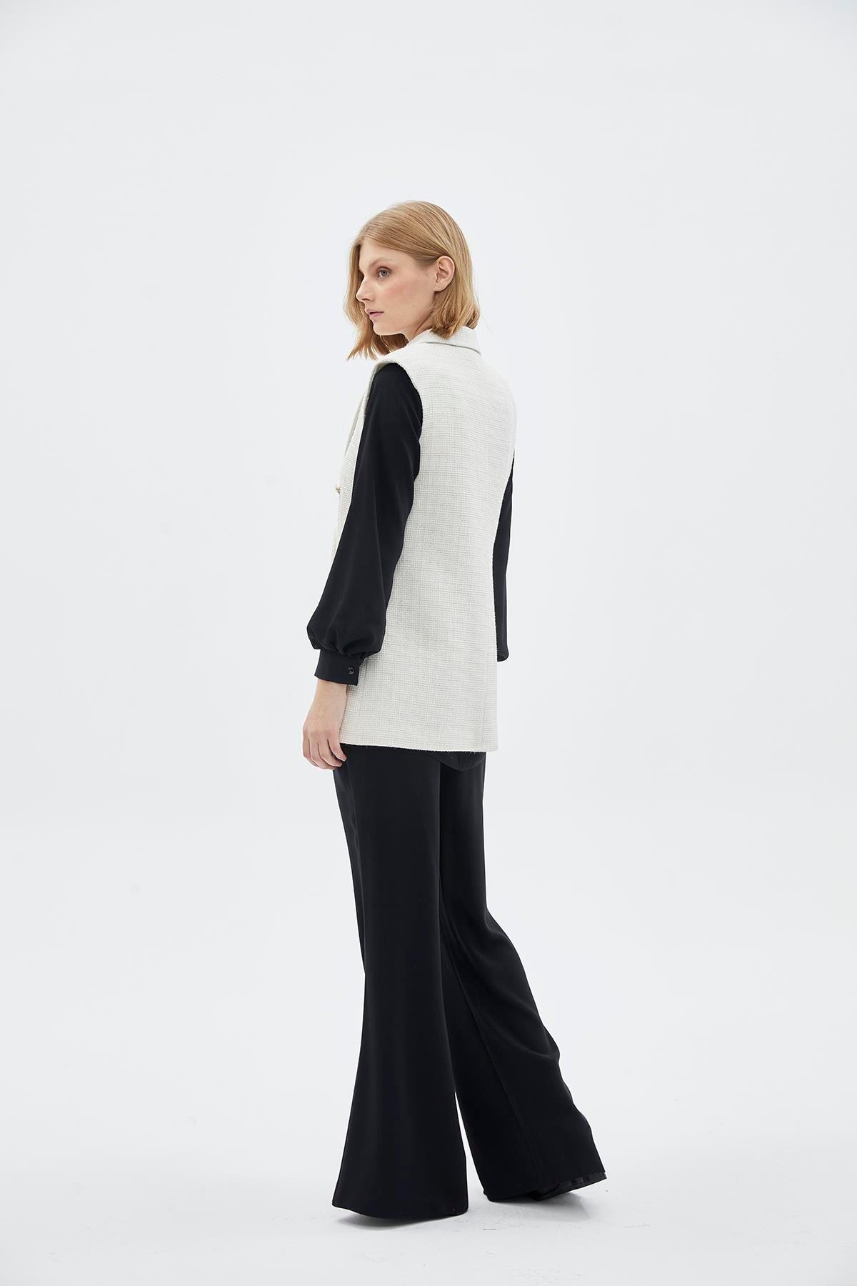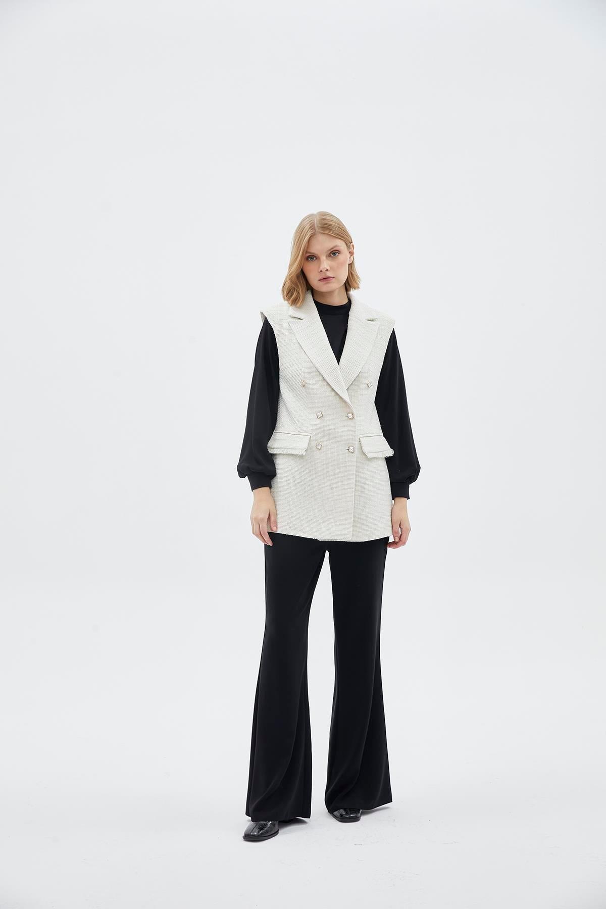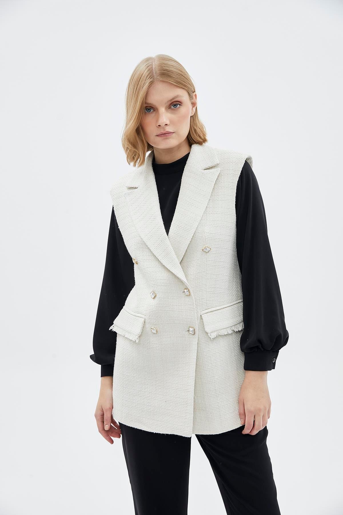 Düğmeli Tweed Dokulu Ekru Üçlü Kombin Takım TK-1387 Özellikleri