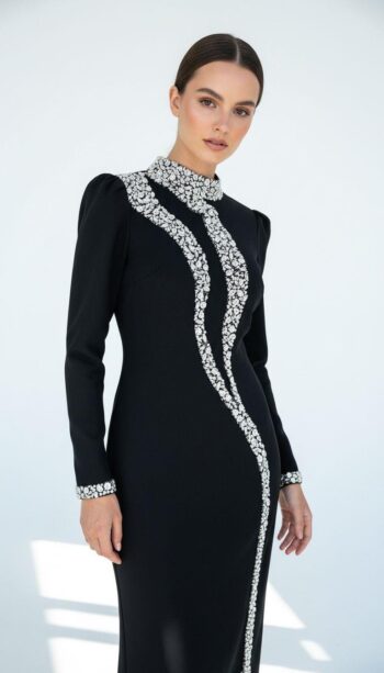 Ahsen Taş Detaylı Abiye Elbise-8600