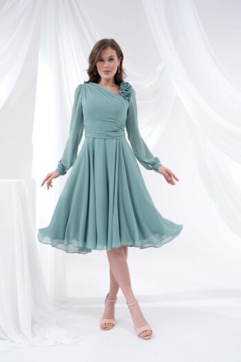 Balen Abiye Yaka Çiçek Detaylı Kısa Elbise-114
